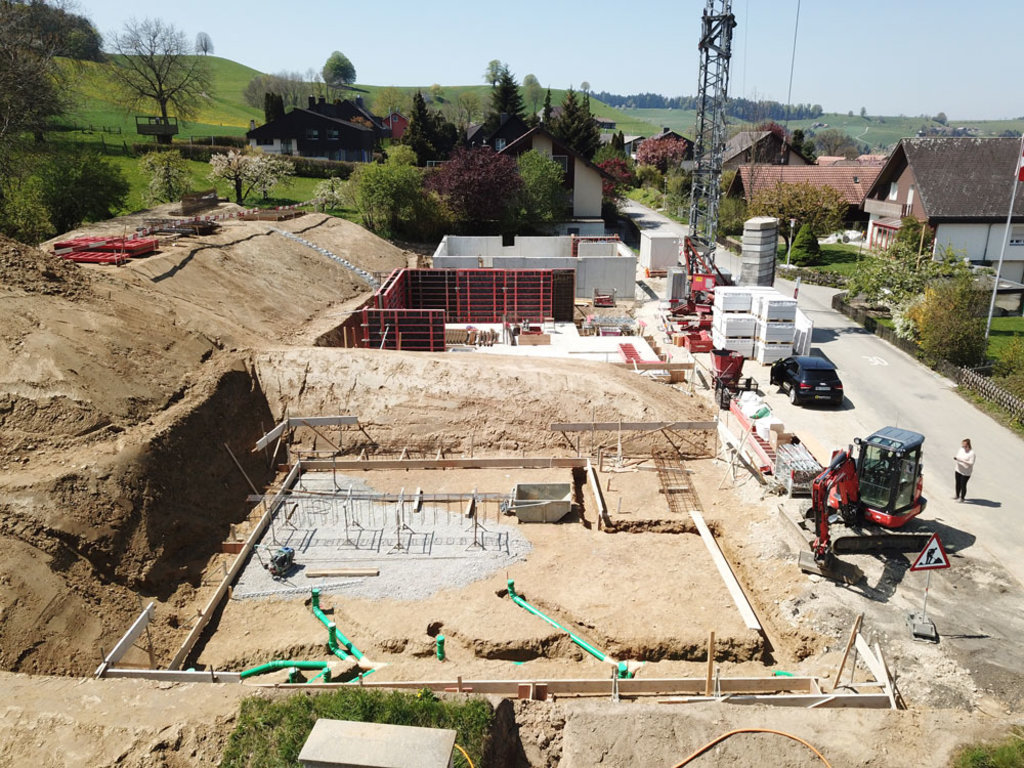 Erschliessung, Erdarbeiten, Baumeisterarbeiten und Umgebungsarbeiten